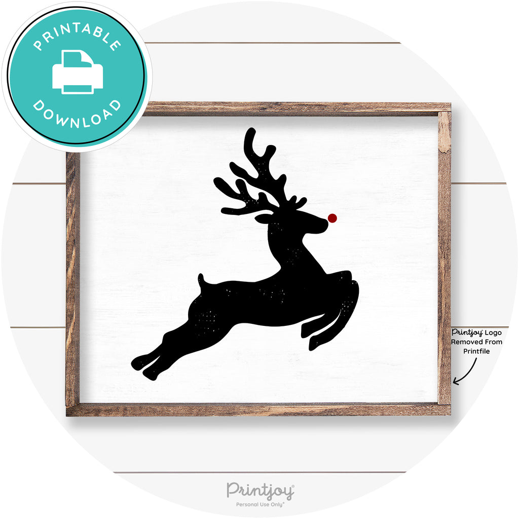 Flying Reindeer Silhouette Christmas Farmhouse Wall Art Free Printable